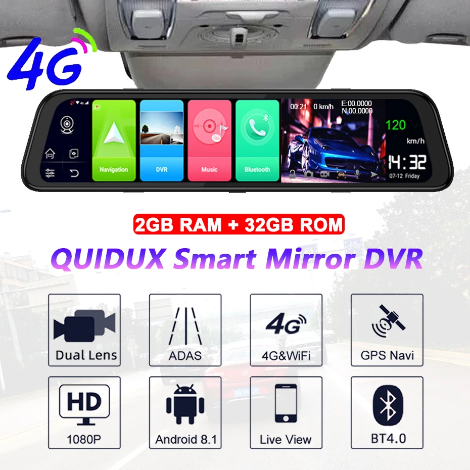- Product name : QUIDUX 4G 12" Touch Car Mirror Video Android 8.1 Dash Cam GPS Navigator ADAS FHD 1080P Dual Camera